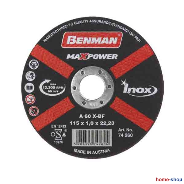 Δίσκος Κοπής INOX-CD MAXPOWER BENMAN Ø125mm X 1,0mm