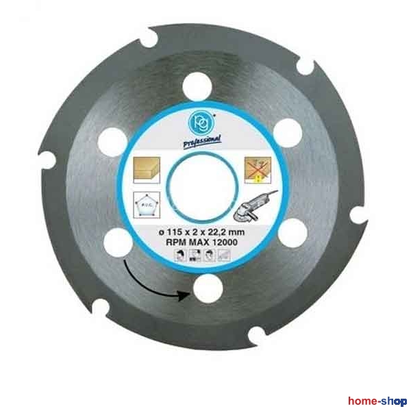 Κατάλληλο για φρεζάρισμα,κόψιμο και διαμόρφωση ξύλου. Κατάλληλο για PVC και πλαστικό. Διάμετρος δίσκου: 115mm Διάμετρος τρύπας: 22.2mm Πάχος δίσκου: 2mm Μέγιστη ταχύτητα-στροφές ανά λεπτό: 12000rpm Art : 419.90 Η χρήση του δίσκου πρέπει να γίνεται με τον προφυλακτήρα του γωνιακού τροχού. Υπάρχει βέλος σωστής φοράς τοποθέτησης