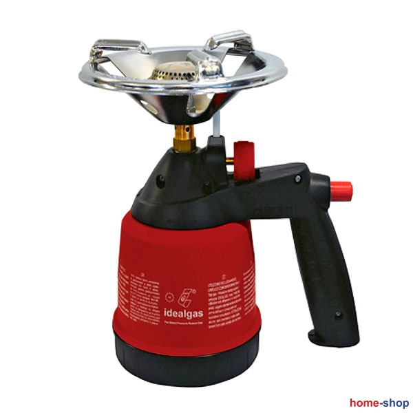 Καμινέτο εστία υγραερίου από πλαστικό σώμα με λαβή σε κόκκινο χρώμα με ηλεκτρονική ανάφλεξη Idealgas Ιταλίας για φιαλίδιο 190gr