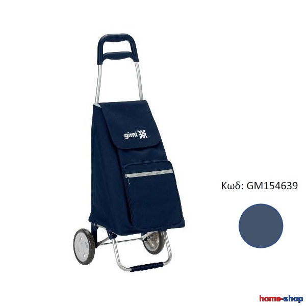 Καρότσι αγορών με ατσάλινο σκελετό και πολυεστερική τσάντα. Η τσάντα είναι αδιάβροχη ανοιγοκλείνει με κορδόνι και έχει θήκη με φερμουάρ. Χωρητικότητα: 45lt Αντοχή σε βάρος: 30Kg