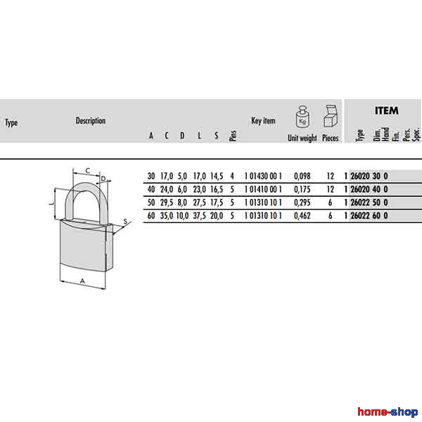 Λουκέτο Ανοξείδωτο CISA 26020 σε διαστάσεις (mm) 30, 40, 50, 60