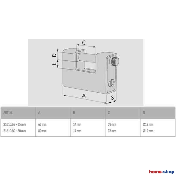 Λουκέτο Ατσάλινο Τάκου CISA 21810 σε διαστάσεις (mm) 65, 80