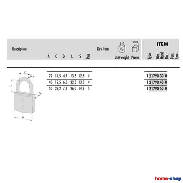 Λουκέτο Ανοξείδωτο CISA 21790 logo line σε διαστάσεις (mm) 30, 40, 50, 60