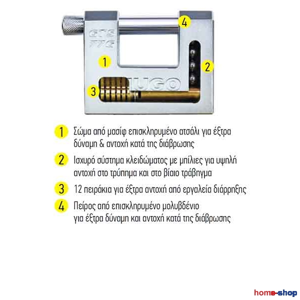 Λουκέτο Ατσάλινο Τάκου HUGO GTS 77G...