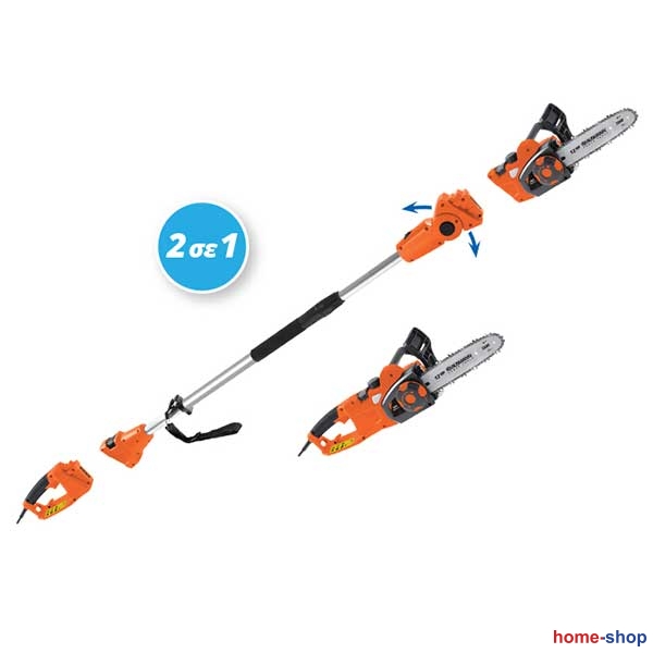 Το αλυσοπρίονο & κονταρoπρίονο 2 σε 1 KRAUSMANN® έχει σχεδιαστεί για να ανταποκρίνεται τόσο στην πρόσβαση ψηλών σημείων κοπής ως κονταροπρίονο αλλά και στην χρήση ως κανονικό αλυσοπρίονο παρέχοντας εξαιρετική ευελιξία και δίνοντας λύσεις για όλες τις εργασίες κοπής ξυλείας, κάνοντας παράλληλα την εργασία σας πιο εύκολη. Είναι ιδανικό για κλάδεμα δυσπρόσιτων κλαδιών σε διάφορα ύψη από το έδαφος χωρίς χρήση σκάλας. Διαθέτει τηλεσκοπικό άξονα που φτάνει στα 2.4m μήκος και περιστρεφόμενη κεφαλή για να σας παρέχει πρόσβαση σε δύσκολα σημεία. Η μετατροπή από κονταροπρίονο σε σκέτο αλυσοπρίονο γίνεται πολύ γρήγορα, ενώ τα χαμηλά επίπεδα κλοτσήματος της αλυσίδας είναι ιδανικά για ομαλές και γρήγορες κοπές ξηρού και βρεγμένου ξύλου. Το εργαλείο αποσυναρμολογείται για ευκολότερη αποθήκευση.