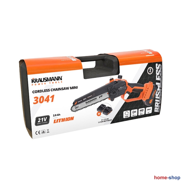 Krausmann 3041 Αλυσοπρίονο επαναφορτιζόμενο mini 20cm BL 21V με 2 μπαταρίες 2.0Α