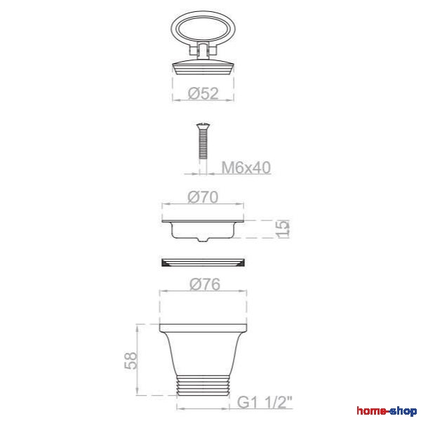 Βαλβίδα νεροχύτου Μικρή Απλή 1 1/2" Φ70 LUX με τάπα Φ52mm L.B. PLAST